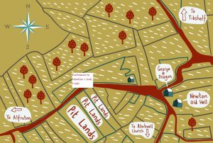 Our representation of a map of 1758 shows fields named “Pit Lands” bordering what is now Alfreton Road opposite the present Newton Link Trail.