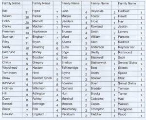 By 1851 the Ball families have taken the number one spot, and the Wilson families have leapt from mid division to second in the Premier League! Family names out altogether number 29 and new names 37. Notable newcomers are the Wilkinson Family into Hilcote and James Crompton into Newton. Stephen Wilkinson was born in Little Stretton Leicestershire, but had married a Blackwell girl Eliza Boucher in1846. His daughter Georgina by his first marriage was living with them and his son John Slater and Stephen Wilkinson are visitors staying with Eliza’s parents John and Margaret Boucher. James Crompton is lodging with the Gothard family in Town Lane Newton and is a Primitive Methodist Minister.